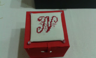 Questa invece è una scatolina realizzata per la mia amica Nella, per il suo compleanno... dentro c' era un buono da spendere in materiale per punto croce