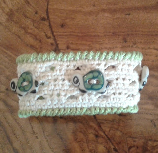 Questo è il bracciale "Carolina" fatto con cotone e uncinetto e con bottoni in ceramica....